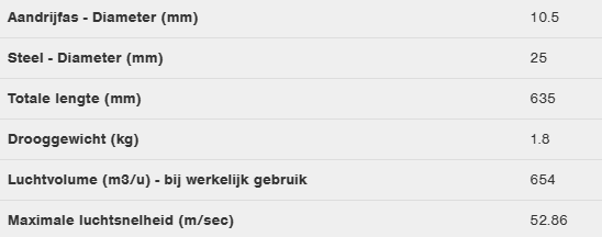1,8 kg - 63,5 cm - Aandrijfas: 10,5 mm