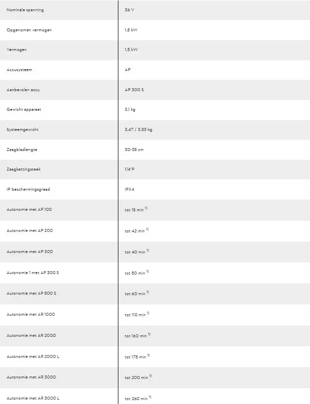 • Krachtige accukettingzaag met hoog zaagvermogen voor professionals