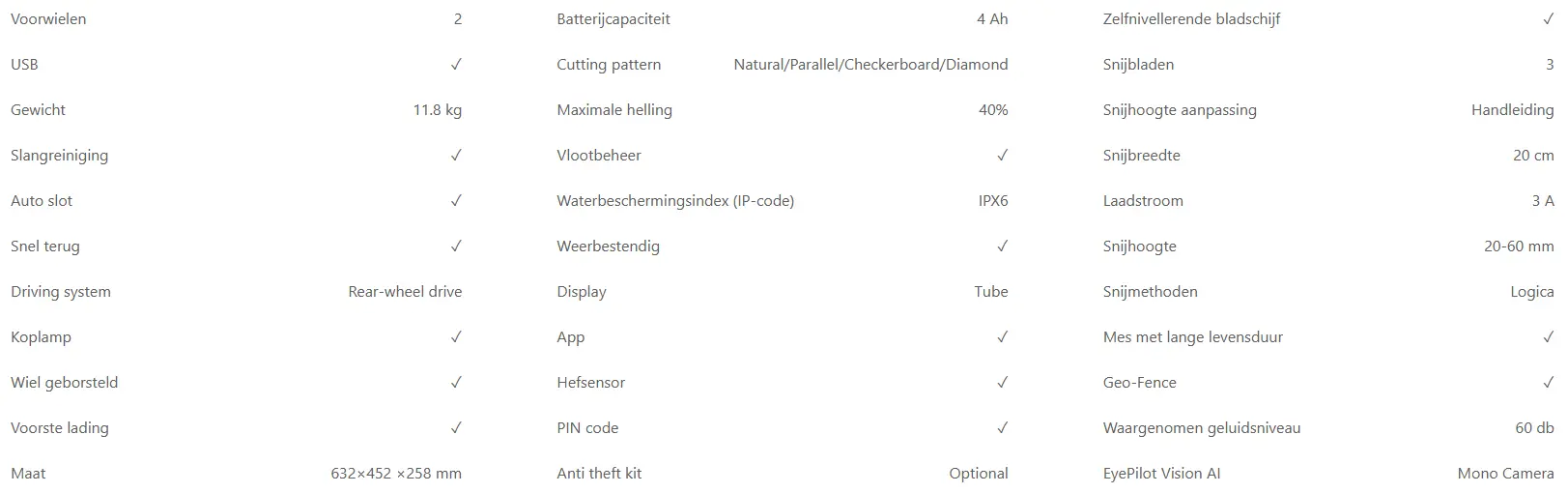 - 24-uurs maaicapaciteit tot 1.000 m² per dag