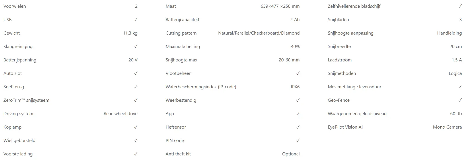 - 24-uurs maaicapaciteit tot 700 m² per dag