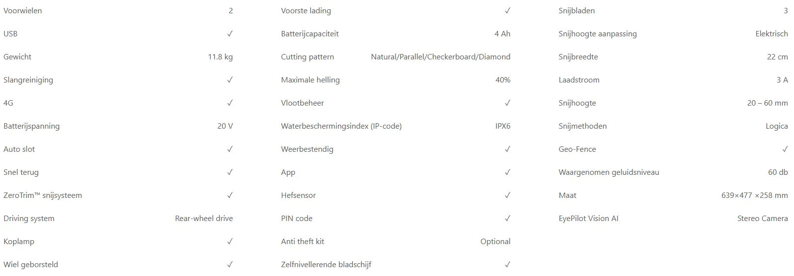 - Geïntegreerde 4G-connectiviteit voor betrouwbare dekking in grote en complexe gazons