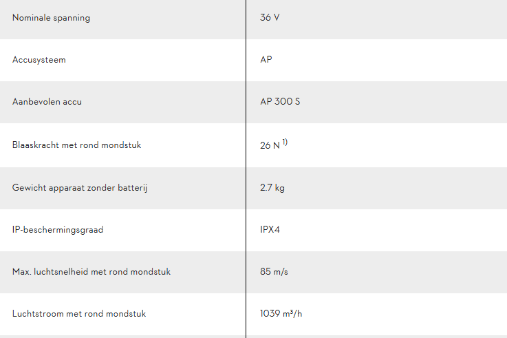 - De krachtigste accubladblazer ter wereld gedurende de volledige looptijd van de accu